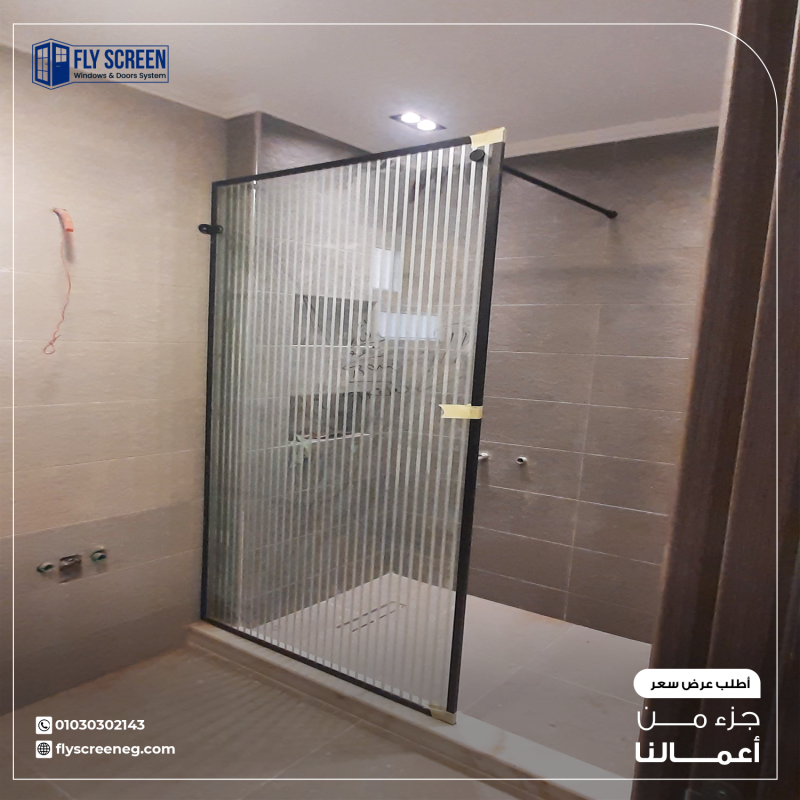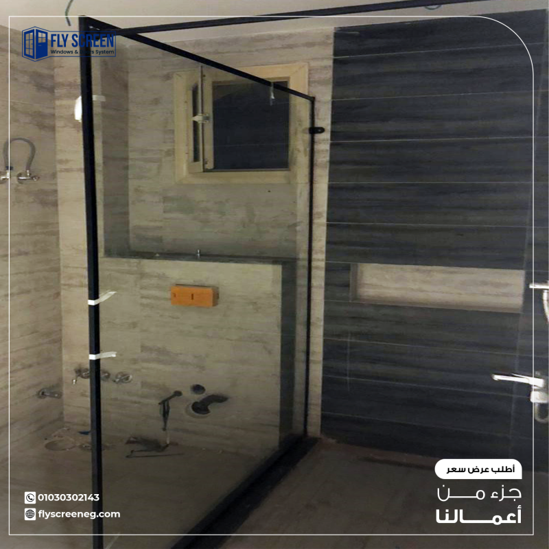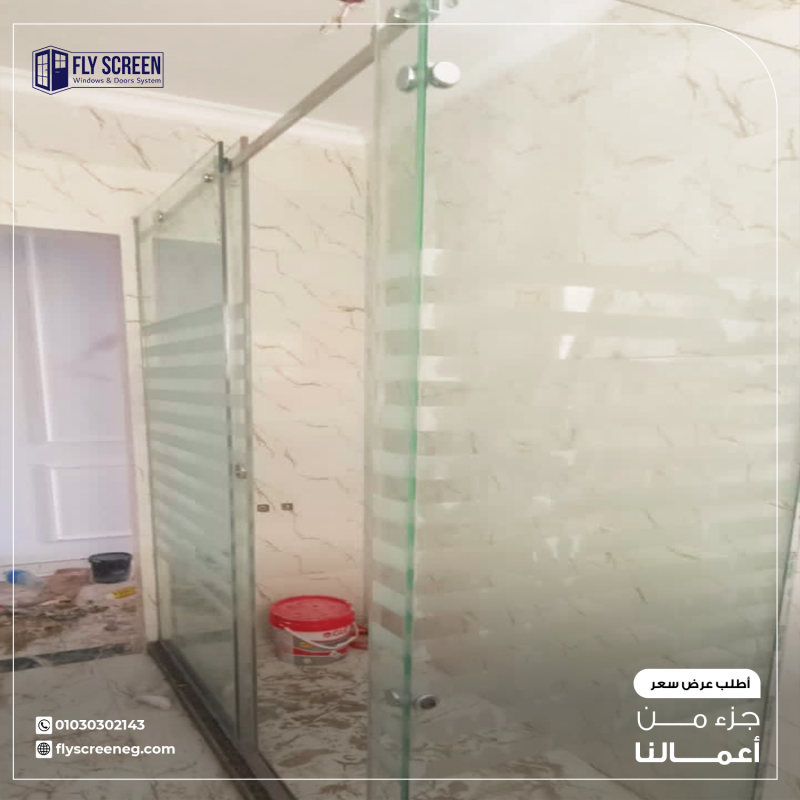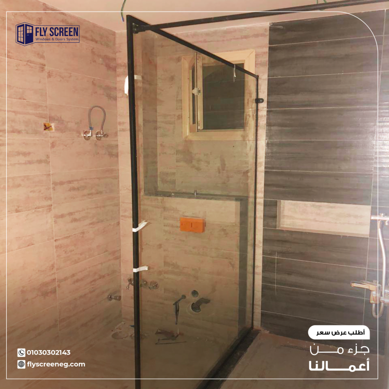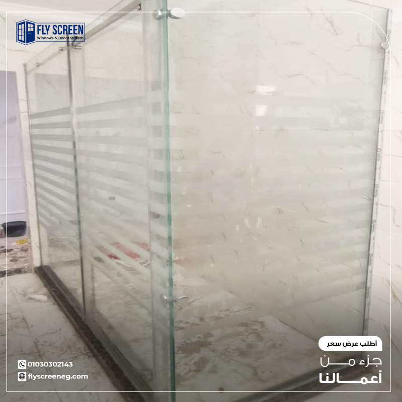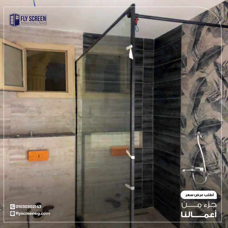 في Fly Screen بنقدّم لك حلول زجاجية مصممة خصيصًا حسب مساحة حمامك وذوقك، سواء كنت محتاج فاصل بسيط أو كابينة شاور متكاملة.