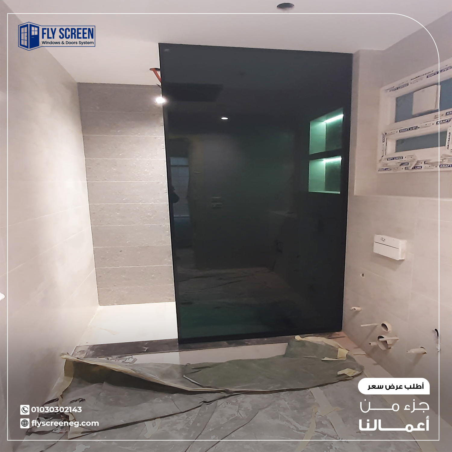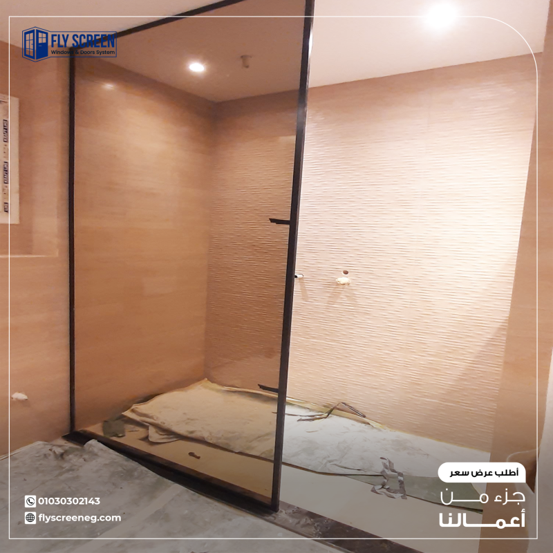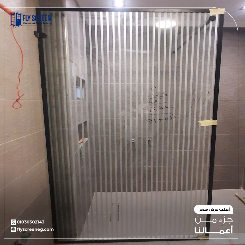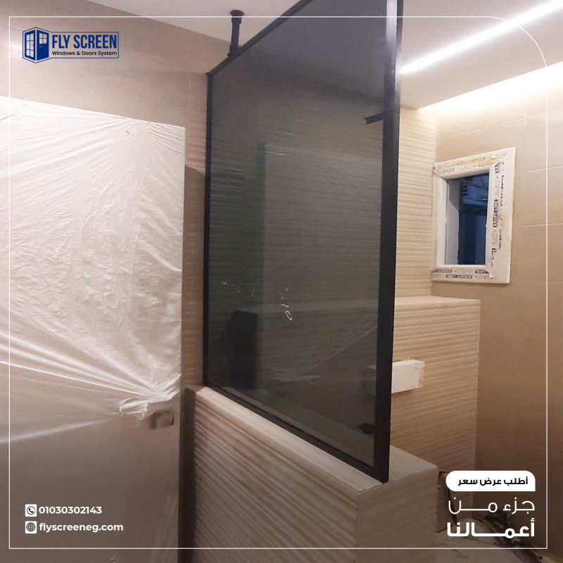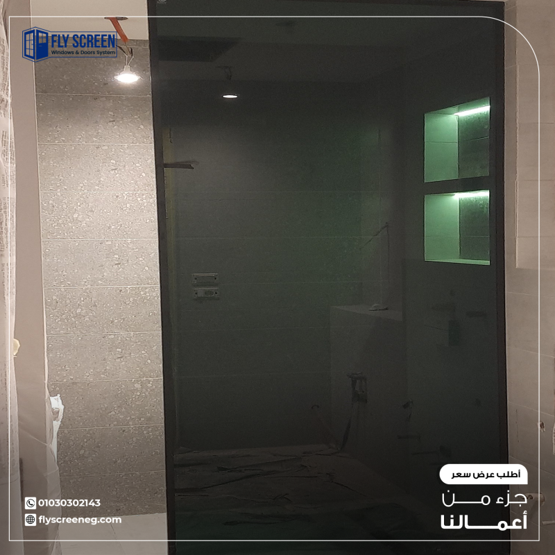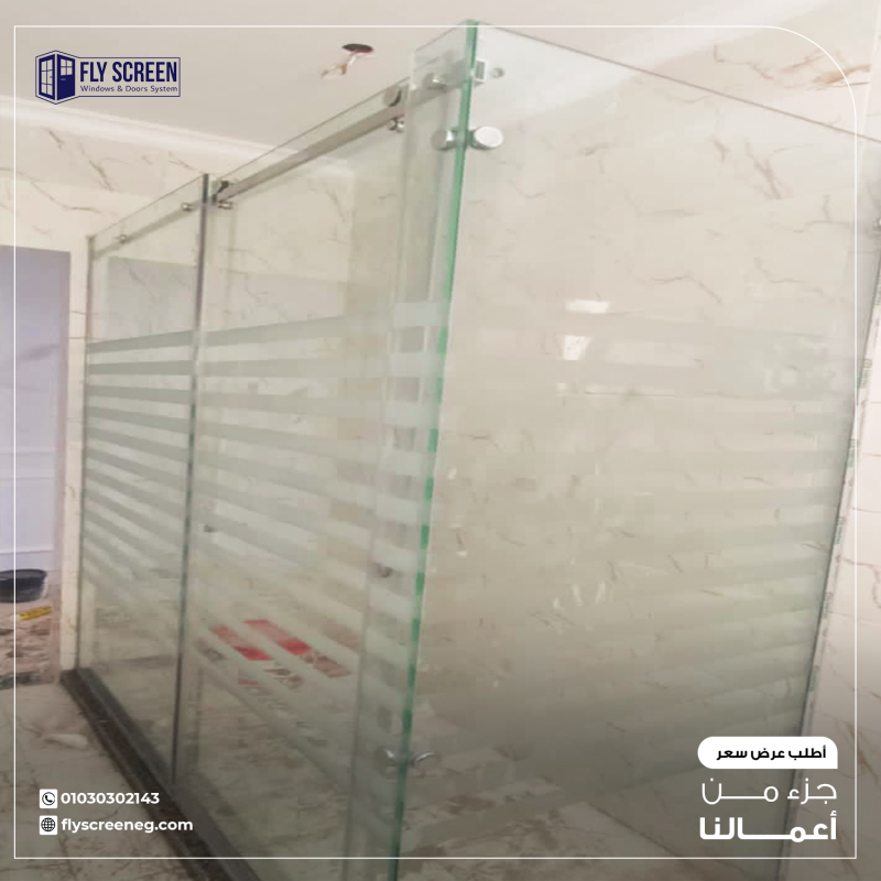 في Fly Screen بنقدّم لك حلول زجاجية مصممة خصيصًا حسب مساحة حمامك وذوقك، سواء كنت محتاج فاصل بسيط أو كابينة شاور متكاملة.