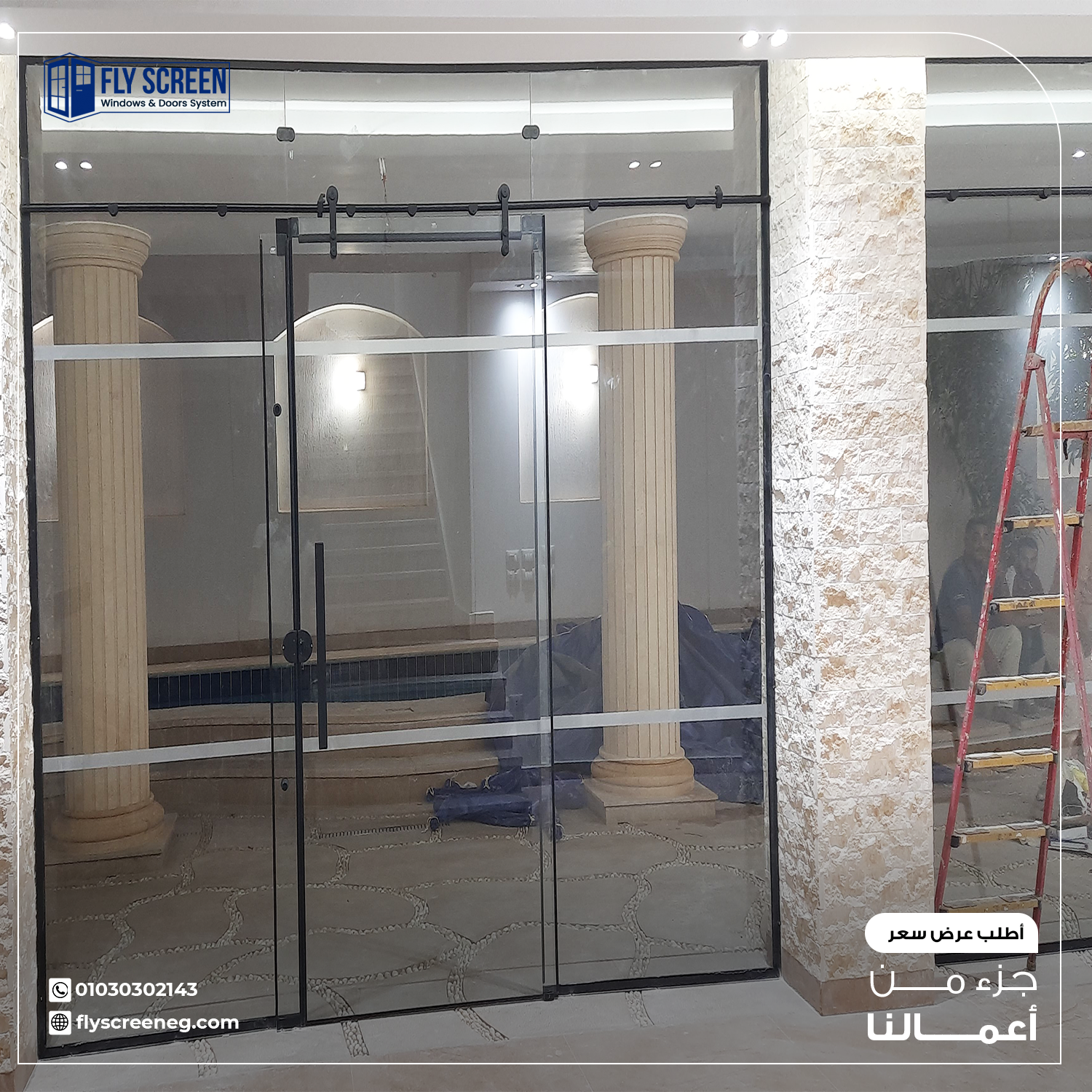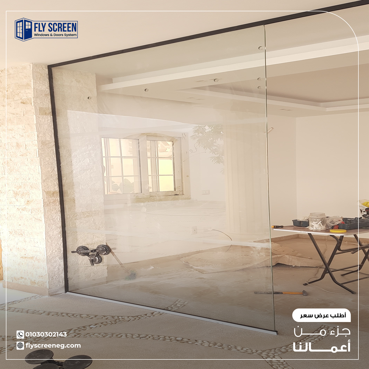 - نعمل على تقفيل حواف الزجاج أثناء عملية التركيب بشكل سليم للحفاظ على سلامة ألواح الزجاج من الرفع أو الحركة.