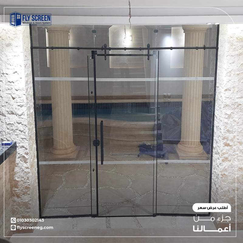 نستخدم زجاج سيكوريت (Tempered Glass) عالي الجودة، مقاوم للكسر والحرارة، مع مفصلات وإكسسوارات مقاومة للصدأ.